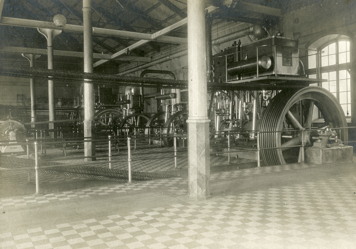 Maskinrummet vid Norbottens Malmförädlingsfabrik på Svartön i Luleå i augusti 1910.