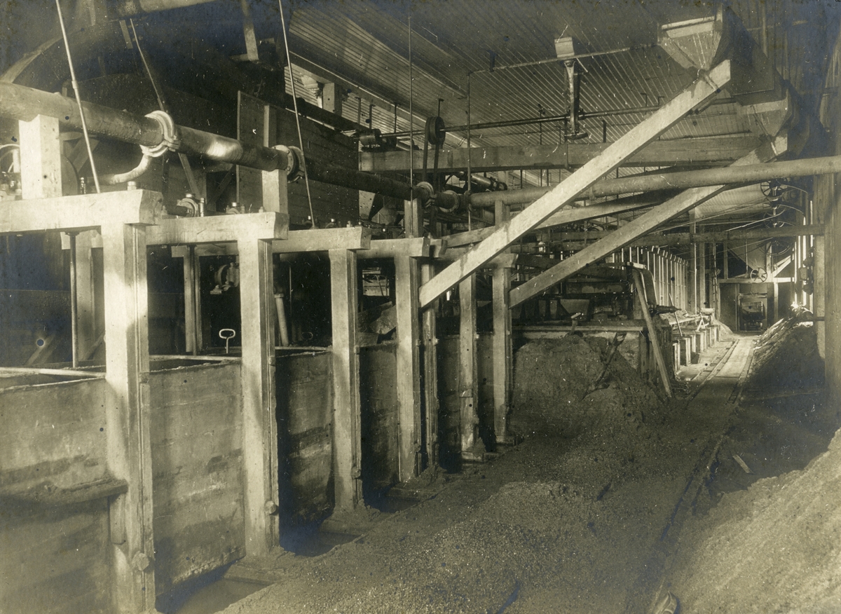 Sättmaskinen i västra anrikningsverket vid Norbottens Malmförädlingsfabrik på Svartön i Luleå i augusti 1910.