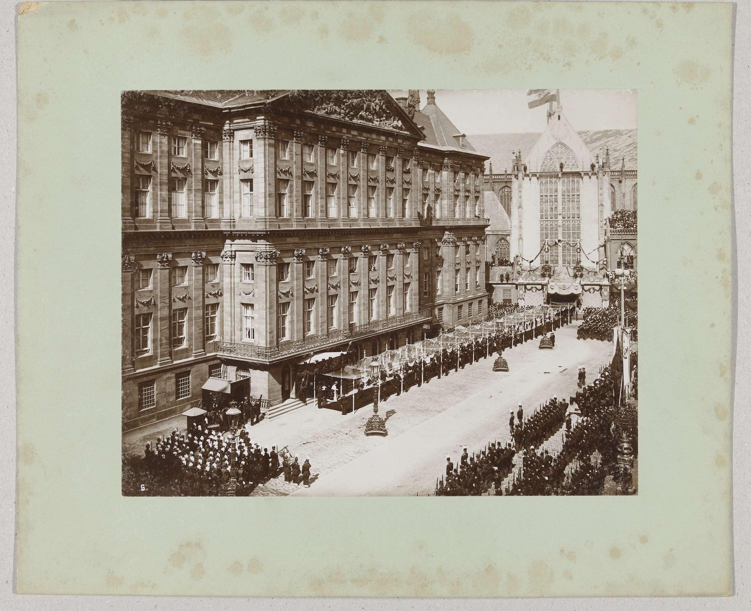 Wilhelmina terugkerend uit de Nieuwe Kerk naar het Paleis op de Dam, Amsterdam, na haar inhuldiging als koningin