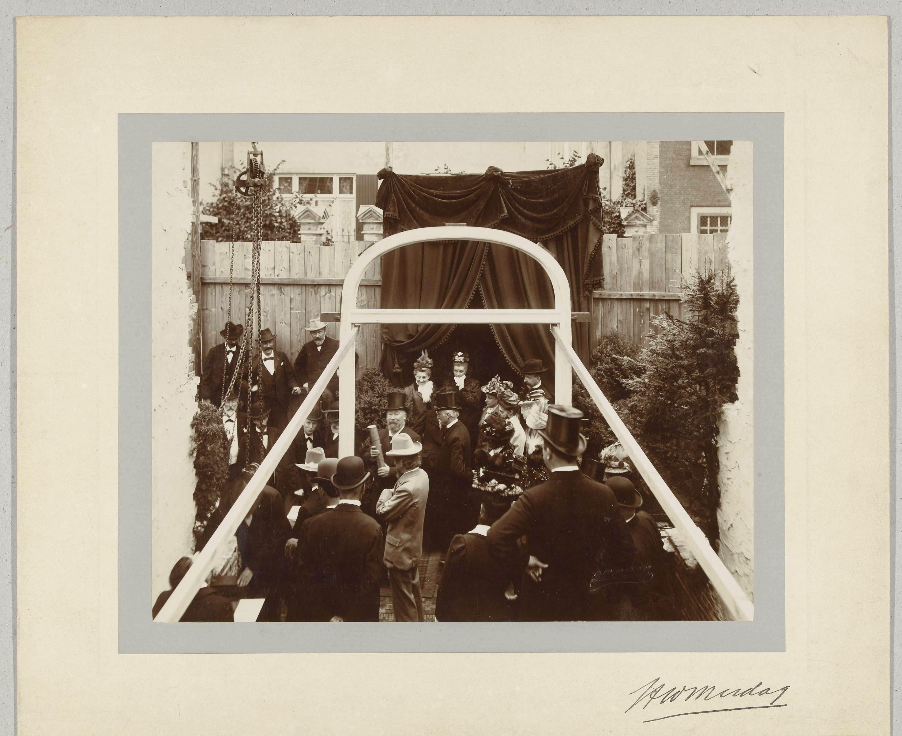 Eerste steenlegging voor de nieuwe kunstzalen van Pulchri Studio te Den Haag, 9 augustus 1900
