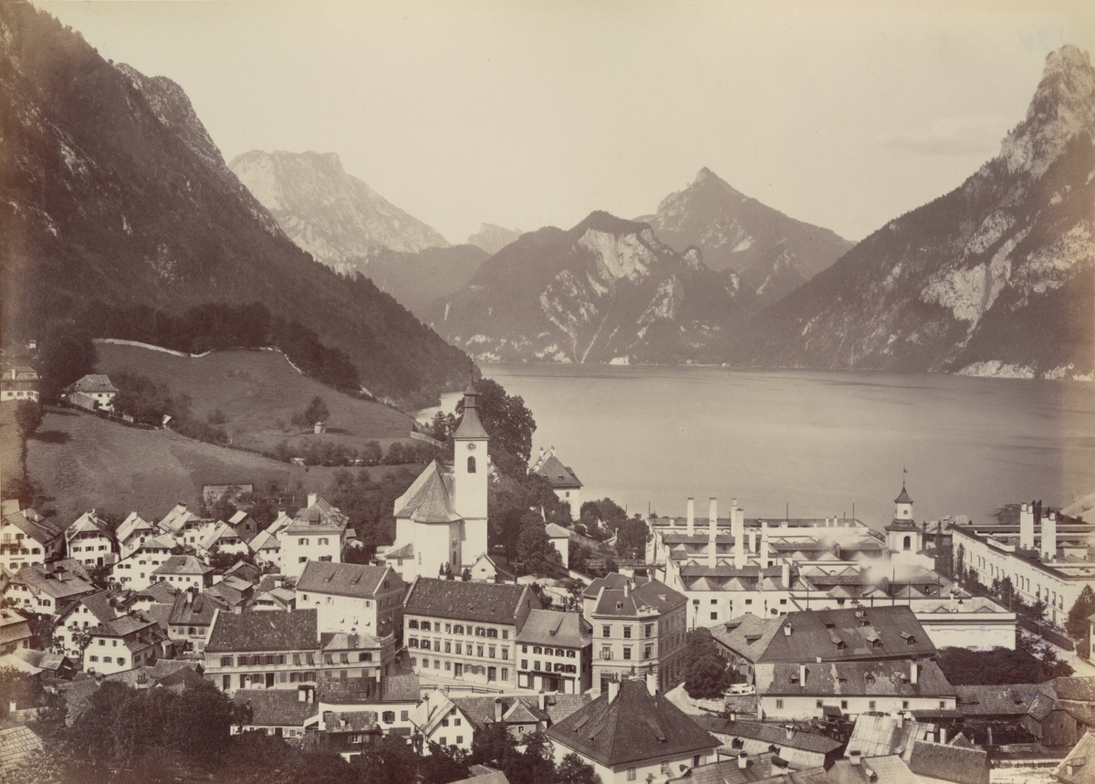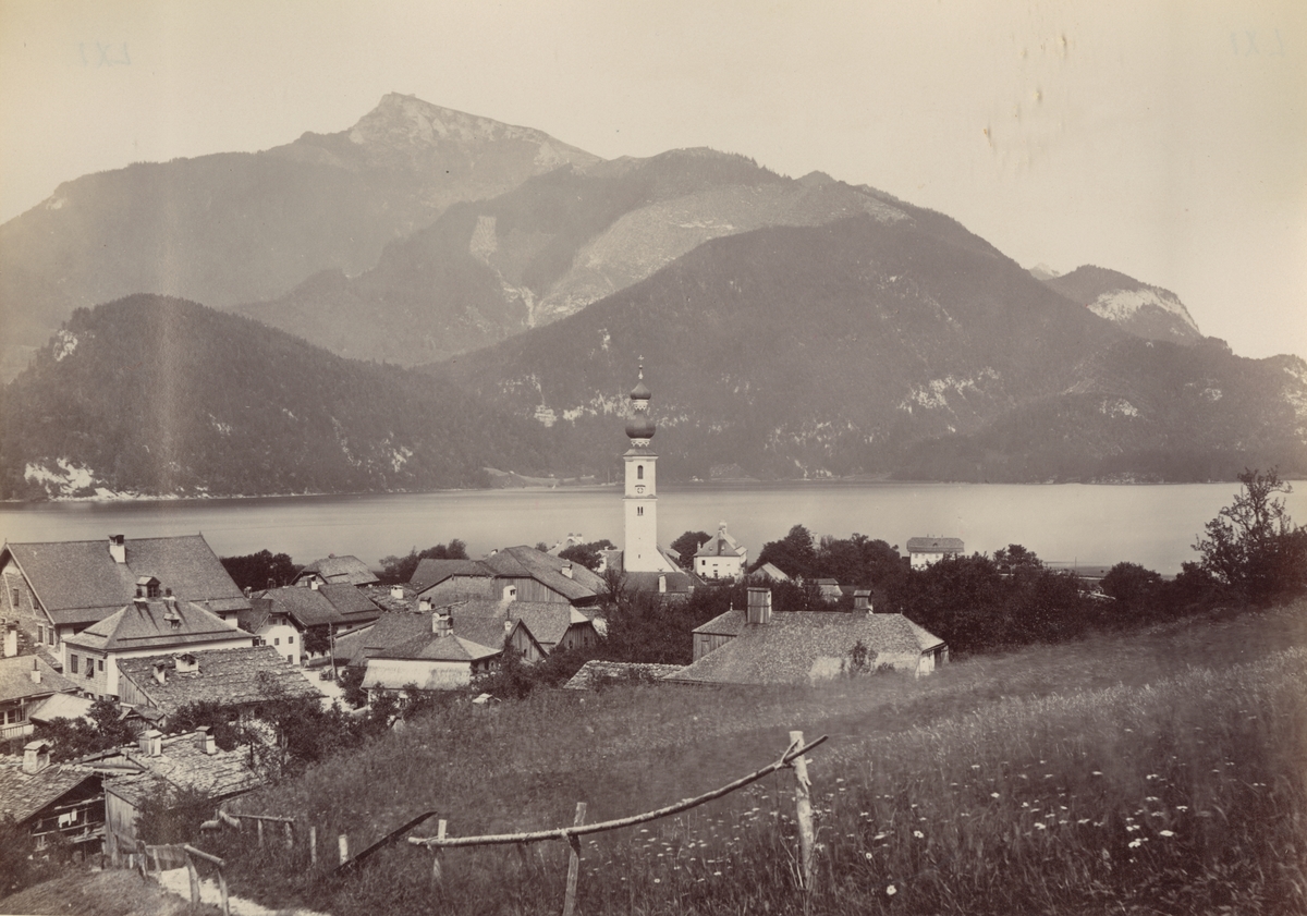 Ur album: Utländska Resan 1900 I. Vy över Salzkammergut med staden Hallein.