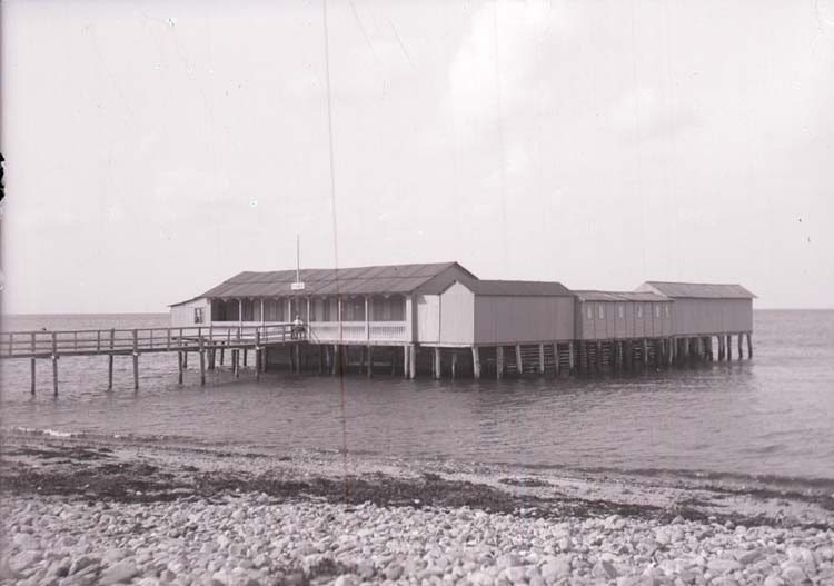 Enligt text som medföljde bilden: "Båstad, Kallbadhusen o. Stranden 31/8 08."
