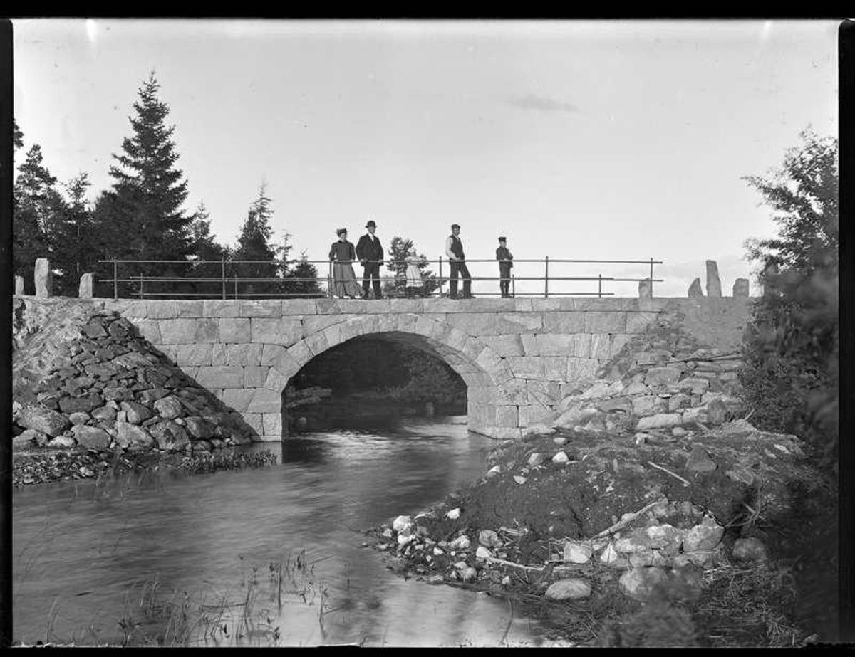 Olof Jonssons text: Anderssonsi Öfra Bräcke, 15 aug 1909. På bilden syns Carl Gottfrid Andersson, Bäve 1889-05-13, Eskil Rudolf Andersson, Bäve 1891-06-14, Johan Jonsson, Hjärtum 1880-11-01, Anna Eleonora, Bäve 1881-01-