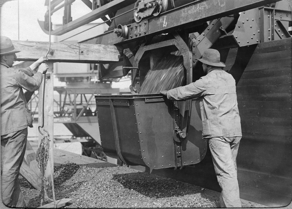 Byggandet av elektricitetsverket i Kirkenes, Norge. Kulvertarna vid högvatten. Fotografiet ingår i ett album från AB de Lavals Ångturbin, 1909. "The Power Station of Aktieselkabet Sydvaranger i Kirkenes".