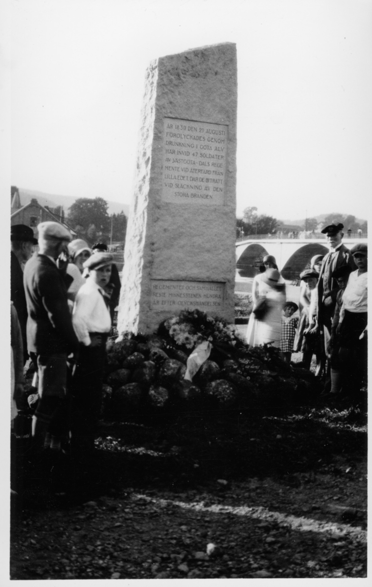 Minnessten över 47 drunknade soldater. Avtäcktes 29/8 1930 i Lilla Edet.