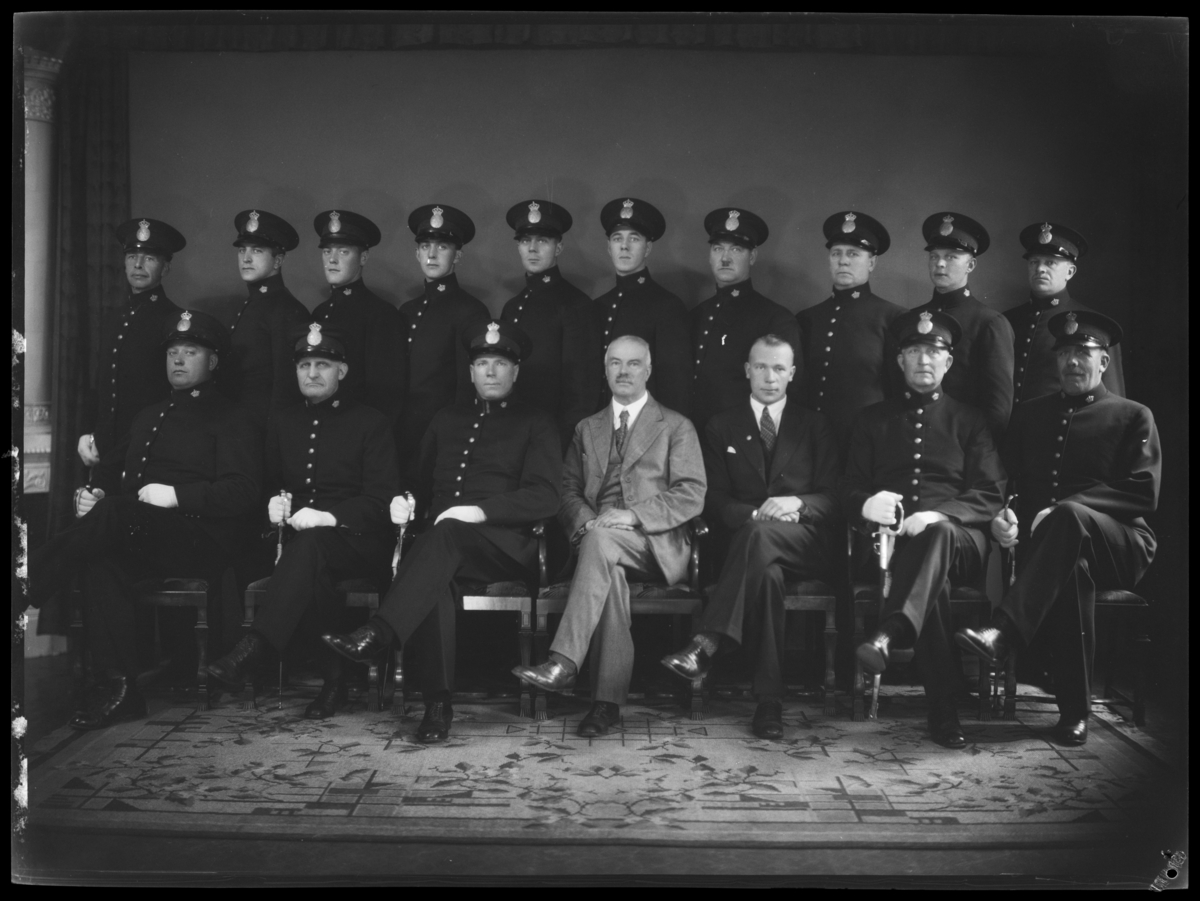 Traffic policemen on point duty, corner of Park and College Streets, 17 August 1934, by Ted Hood