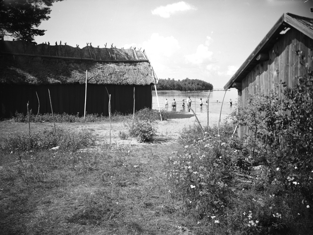 Chefen för F 2 Roslagens flygflottilj, Herman Sundin, inspekterar marinspaningskursen på Fårösund, 1938. Manskapet lediga och återgår till arbetet.