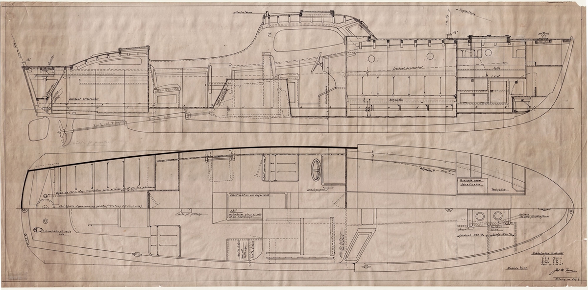 HMS Aark Royal (1937). Scale 1:96. A plan showing the aft sections of the aircraft carrier HMS Ark Royal (1937).