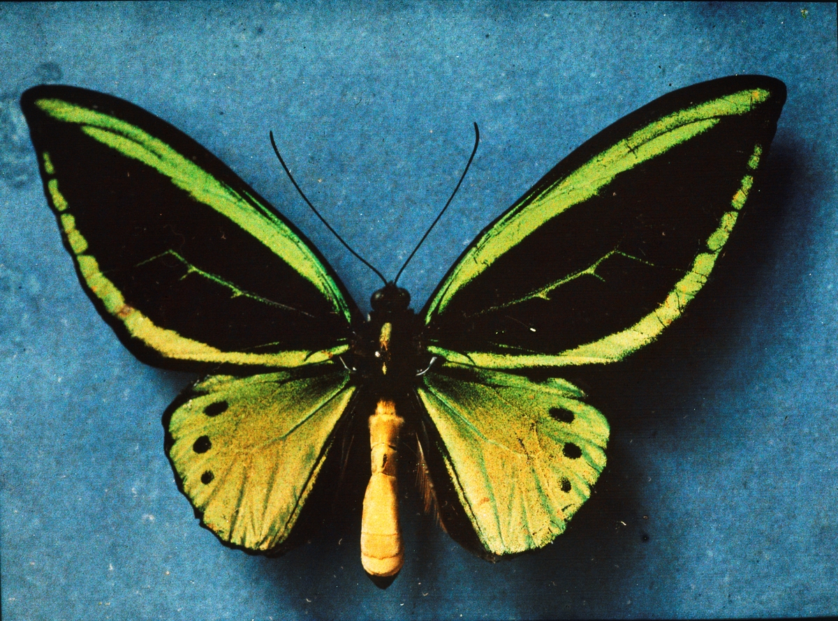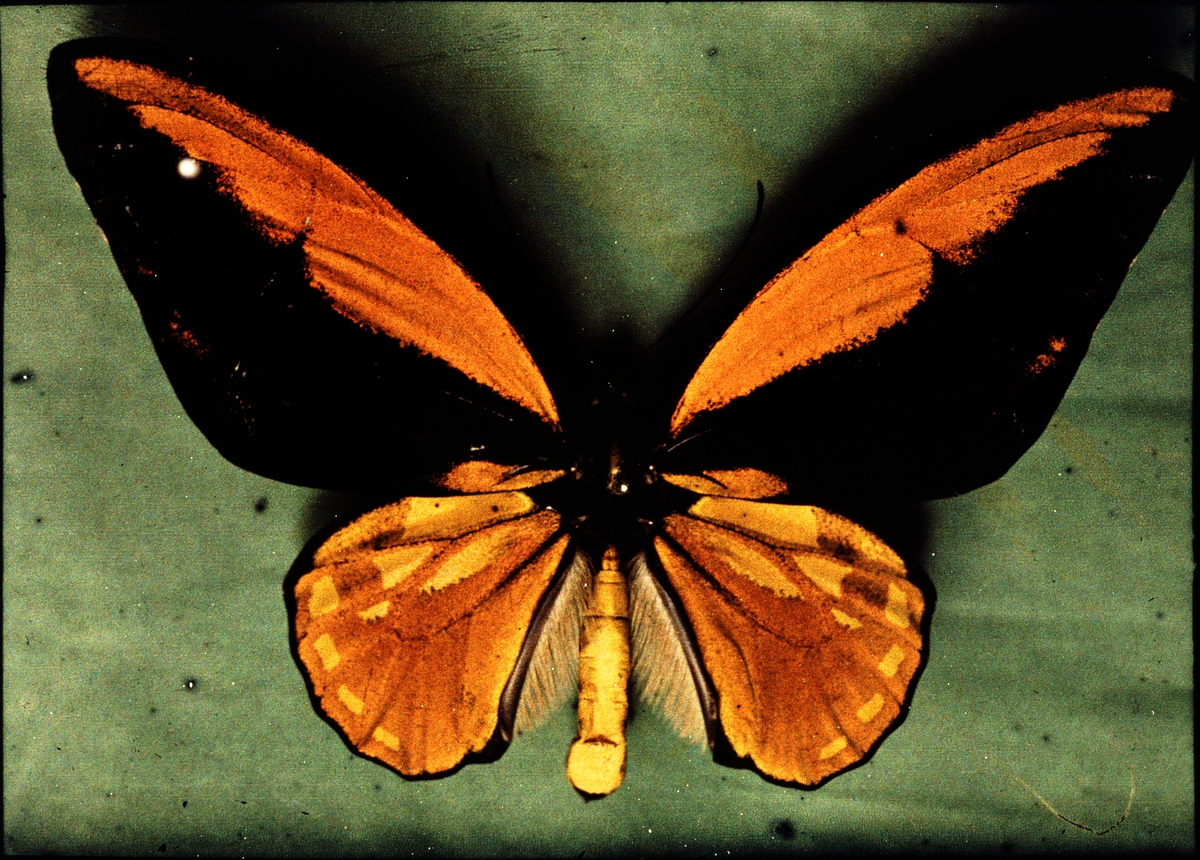 Lumières-autokrom. Fjäril (Madagaskar) Riksmuseet Prof. Sjöstedt. Fotograferad i sept. 1912 med f/11, 7 sek. exponering.