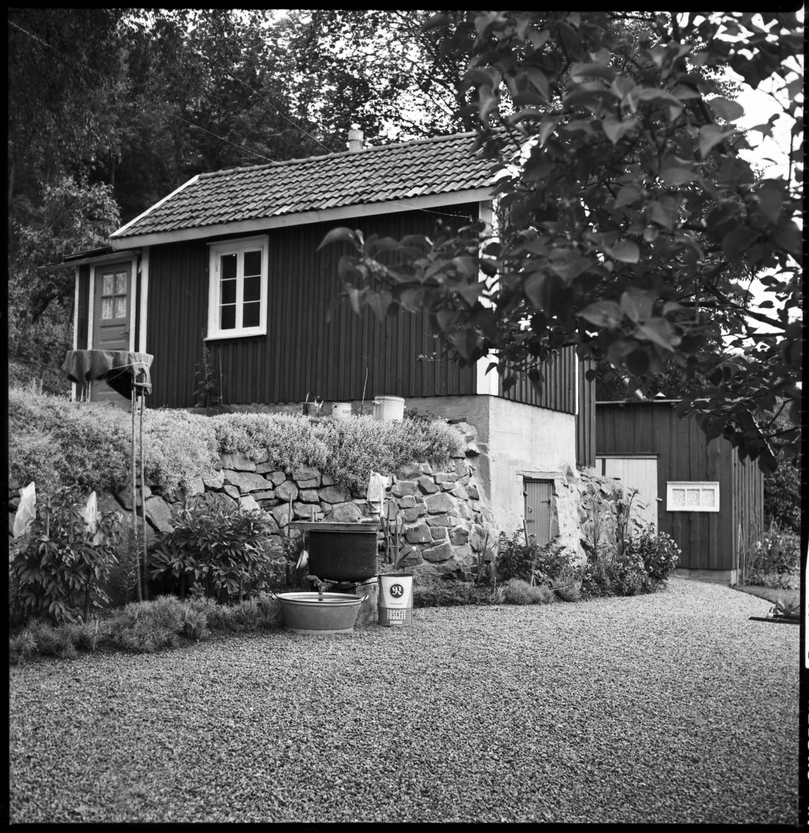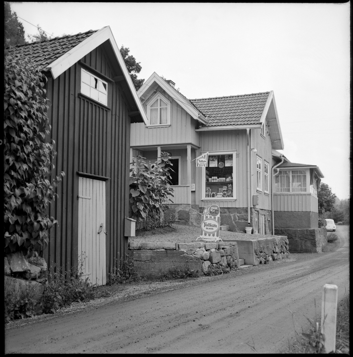 Västra Tunhem, Larsgården. Speceriaffär med reklamskyltar för Trollhätte glass.