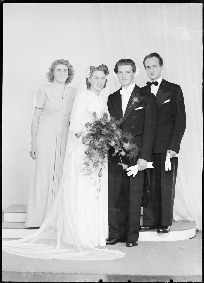 Enligt fotografens journal nr 7 19441950: "Svensson, Brudp. Henning Dafinseröd Ucklum".