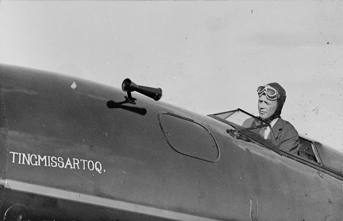 Charles Lindbergh och Anne Morrow Lindbergh i sjöflygplanet Lockheed 8 Sirius vid besök på F 2.