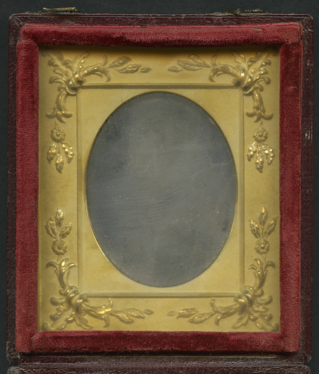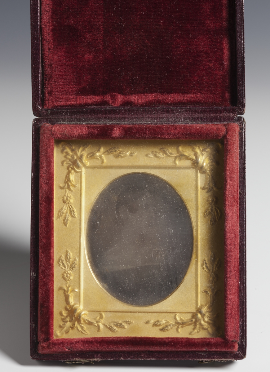 Baksidan av daguerreotyp. Porträtt (troligen) av Amelia Byam som gifte sig med John Ericsson den 15 oktober 1836, då var hon 19 år, alltså född 1817. Amelia Byam var halvsyster med Mrs Charles Seidler, en av John Ericssons f&ou