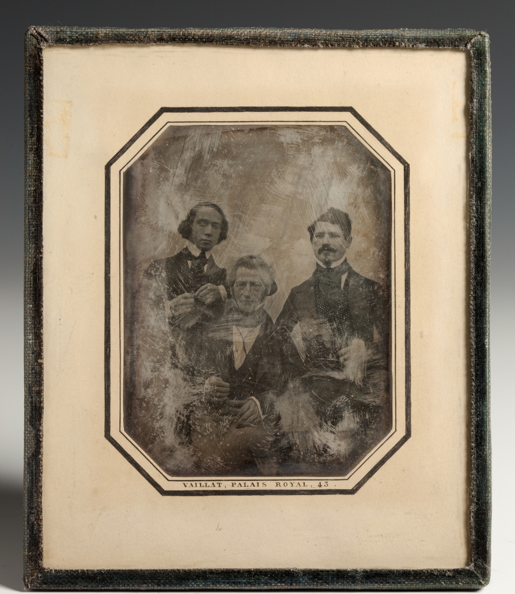 Daguerreotyp. Porträtt av Industriidkaren Salomon, Ludvig Lamm (1786-1857) med sönerna Jacques (1817-1891) och Martin (1824-1878). Bilden är tagen när Jacques arbetade i firman Cail & Co.
