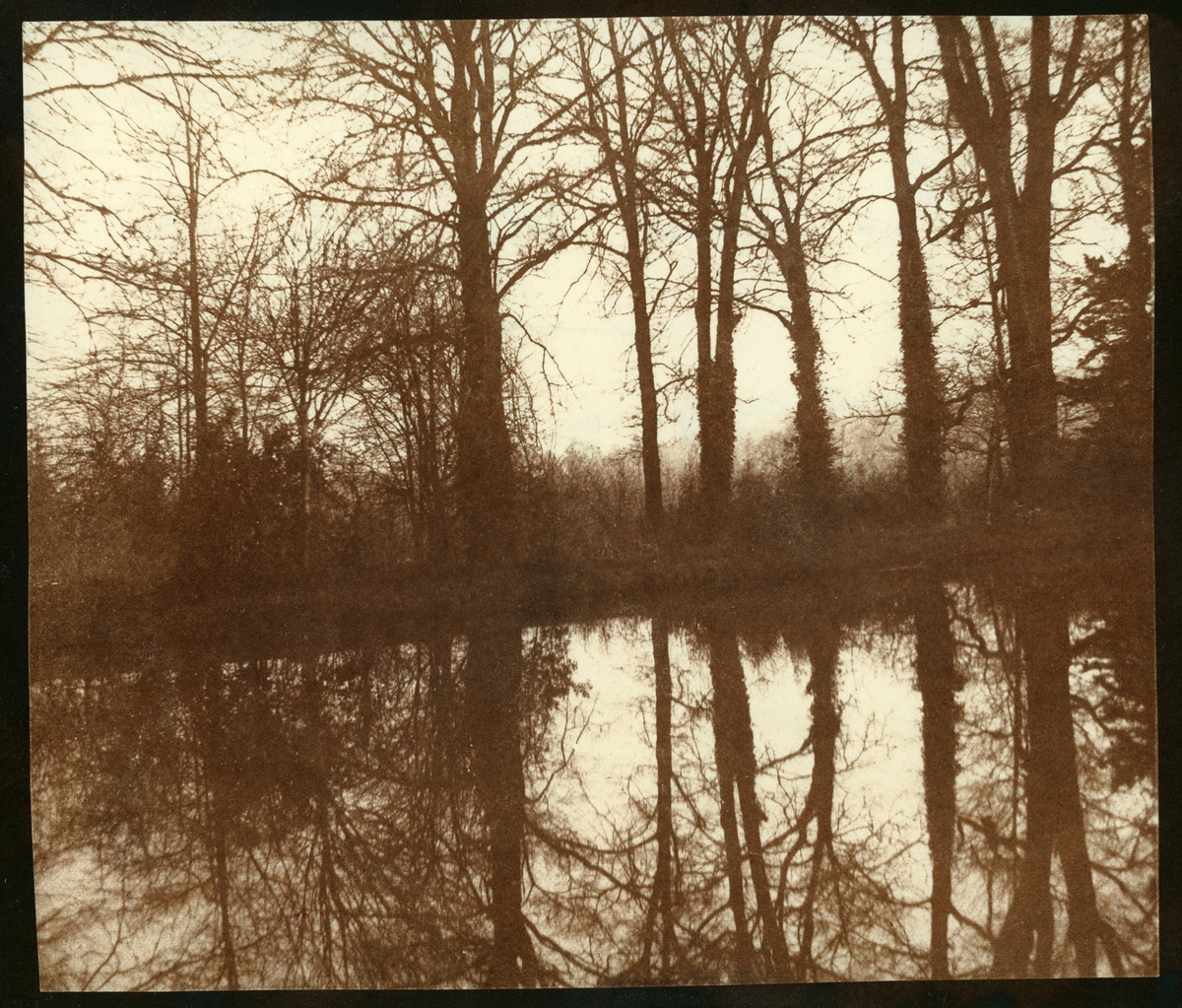 Originalkalotyp. Vinterträd som speglar sig i dammen vid Lacock Abbey, troligen 1841/1842.