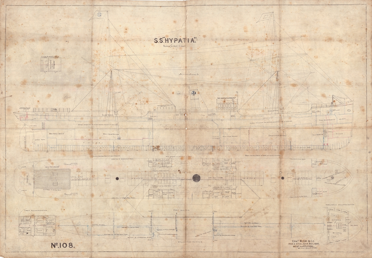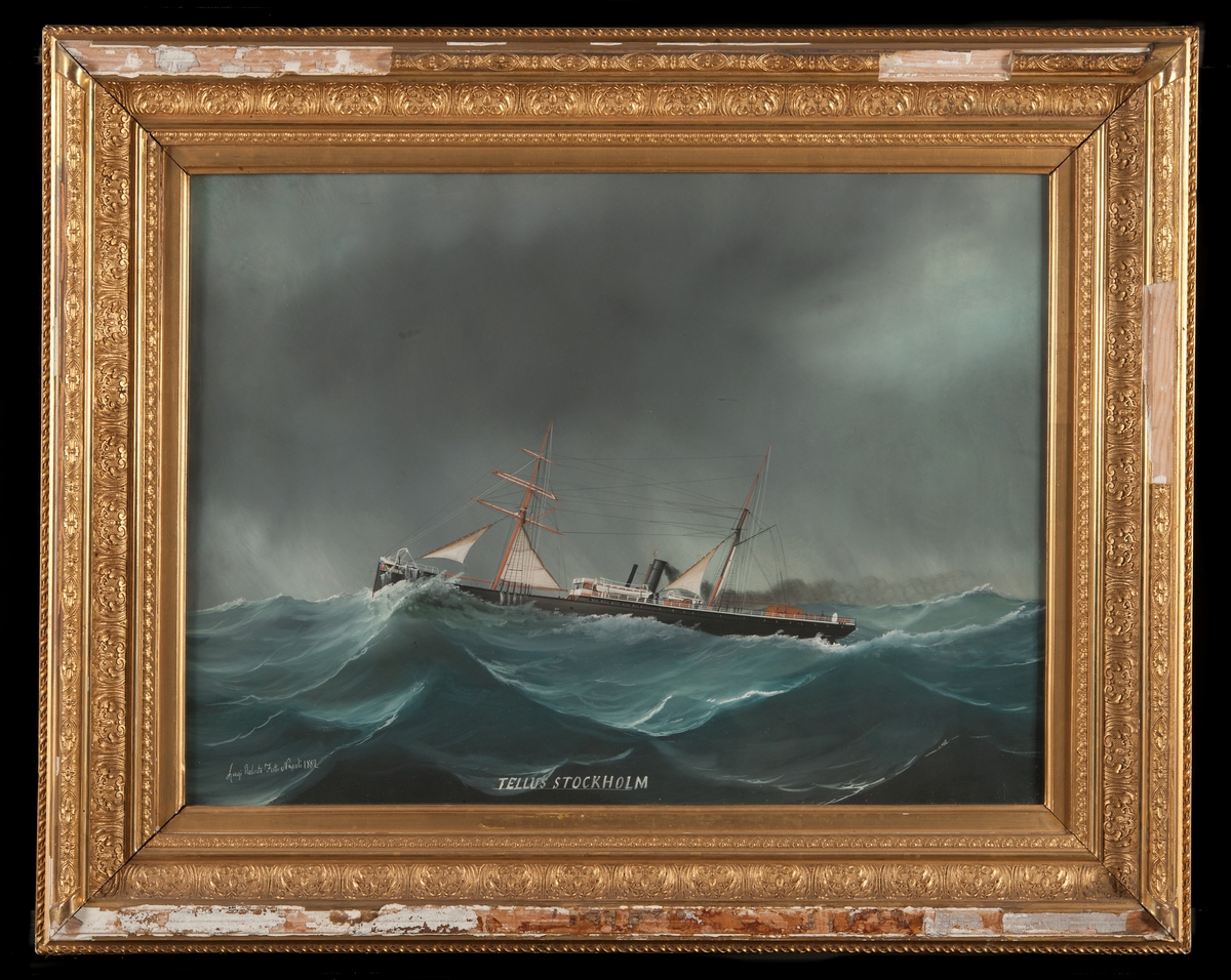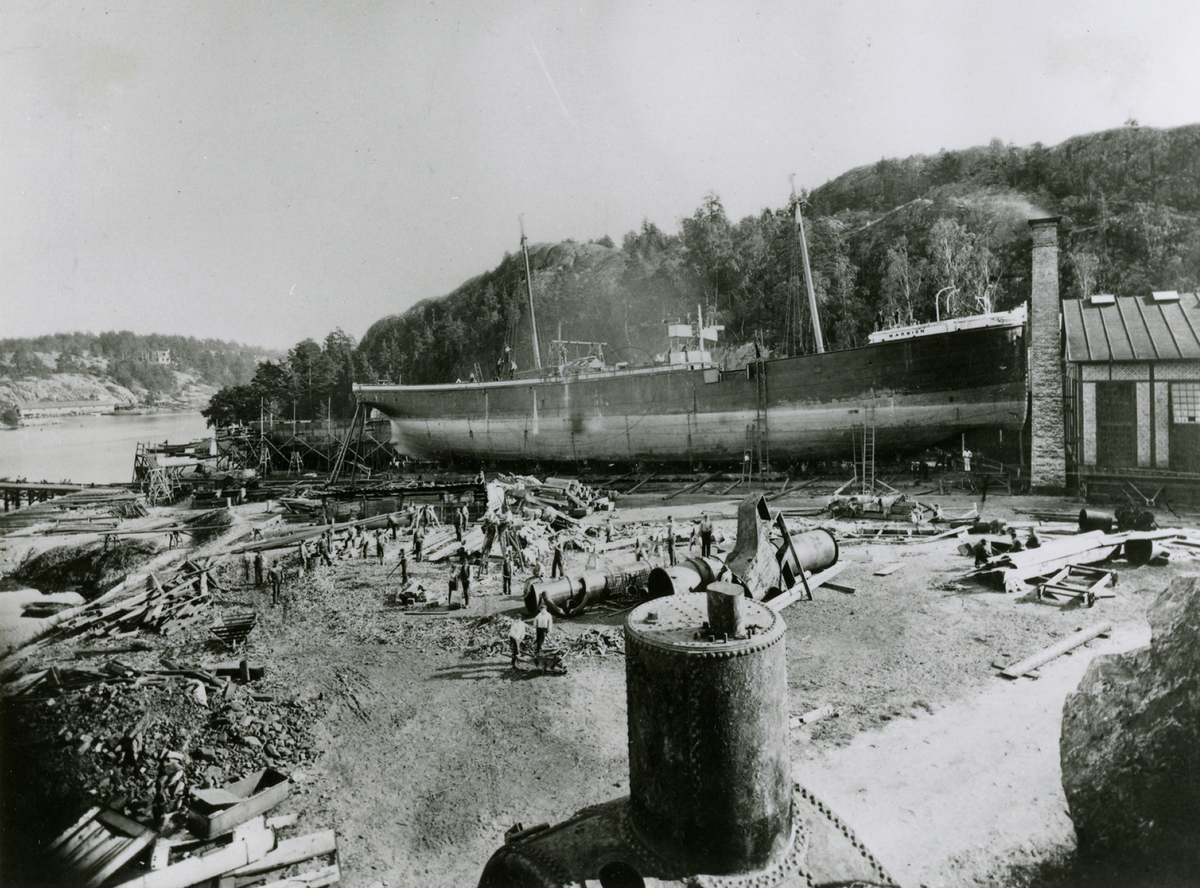 Foto visande lastångfartyget "MARMION" av West Hartlepool på slipen Södra varvet Stockholm år 1882. [Mer troligt Finnboda Slip]