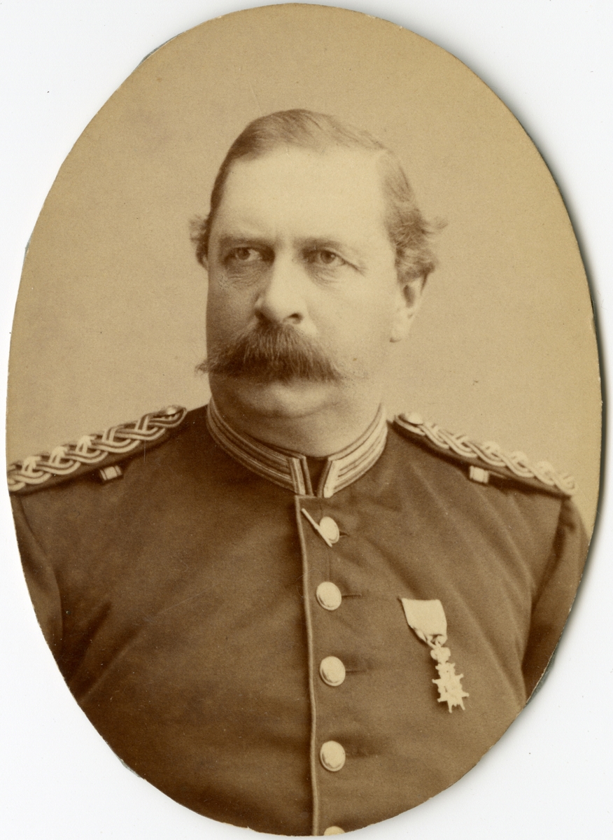 Porträtt av Ivar Valentin. Valentin var i krigstjänst i nederländska ostindien, acheprovinsen, mellan åren 1877-1880. Medaljen är "Ereteken voor Belangrijke Krijgsbedrijven".