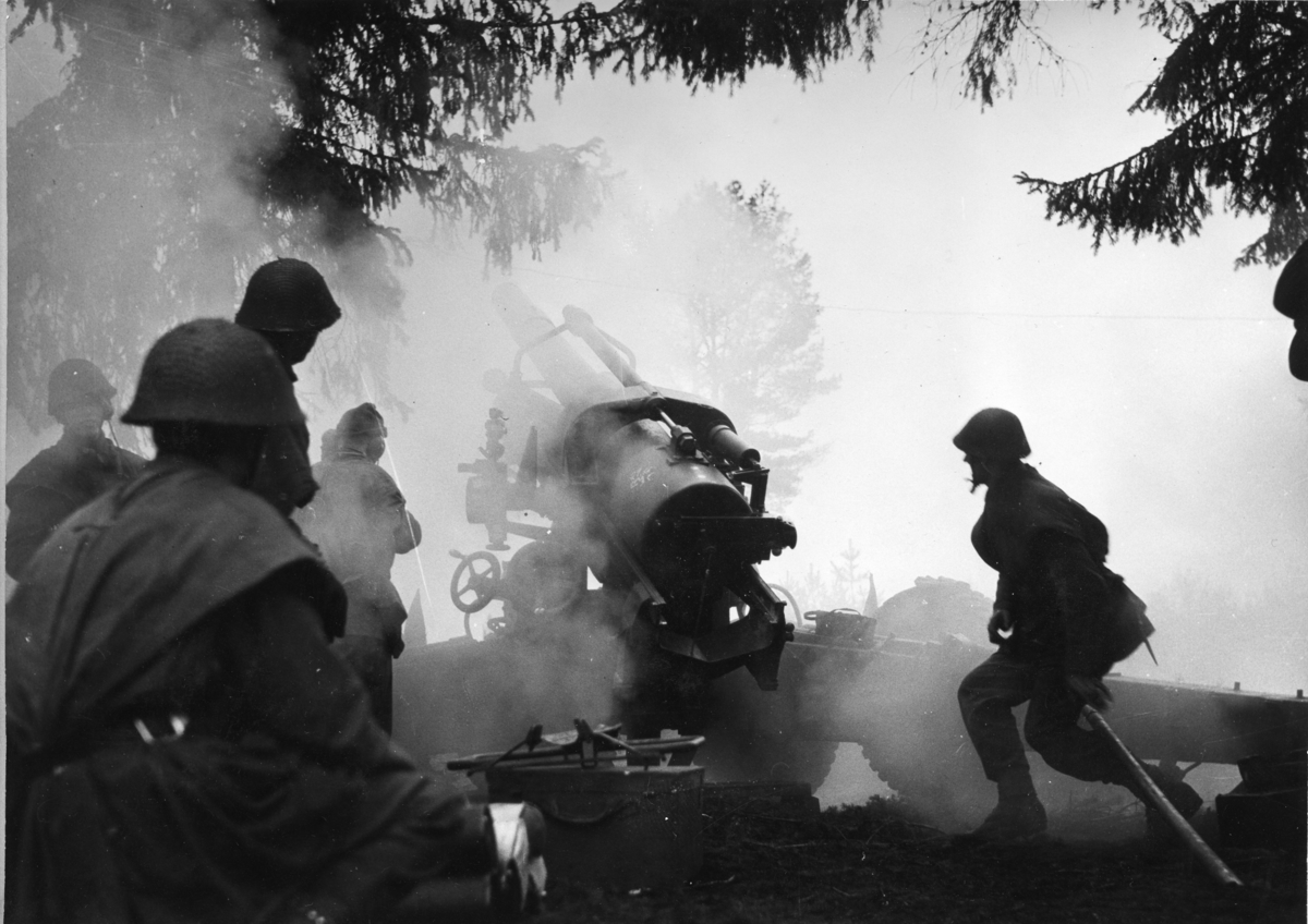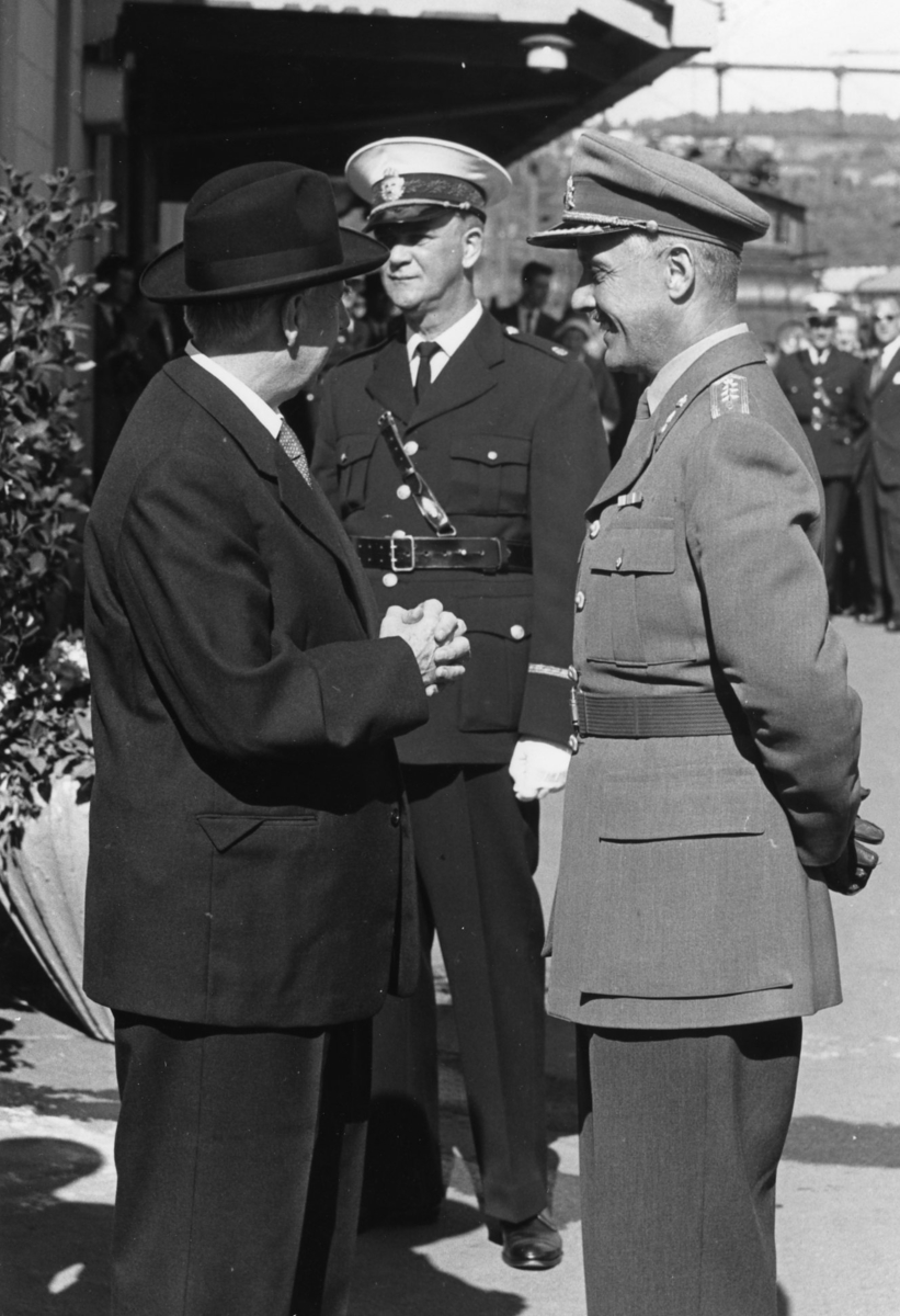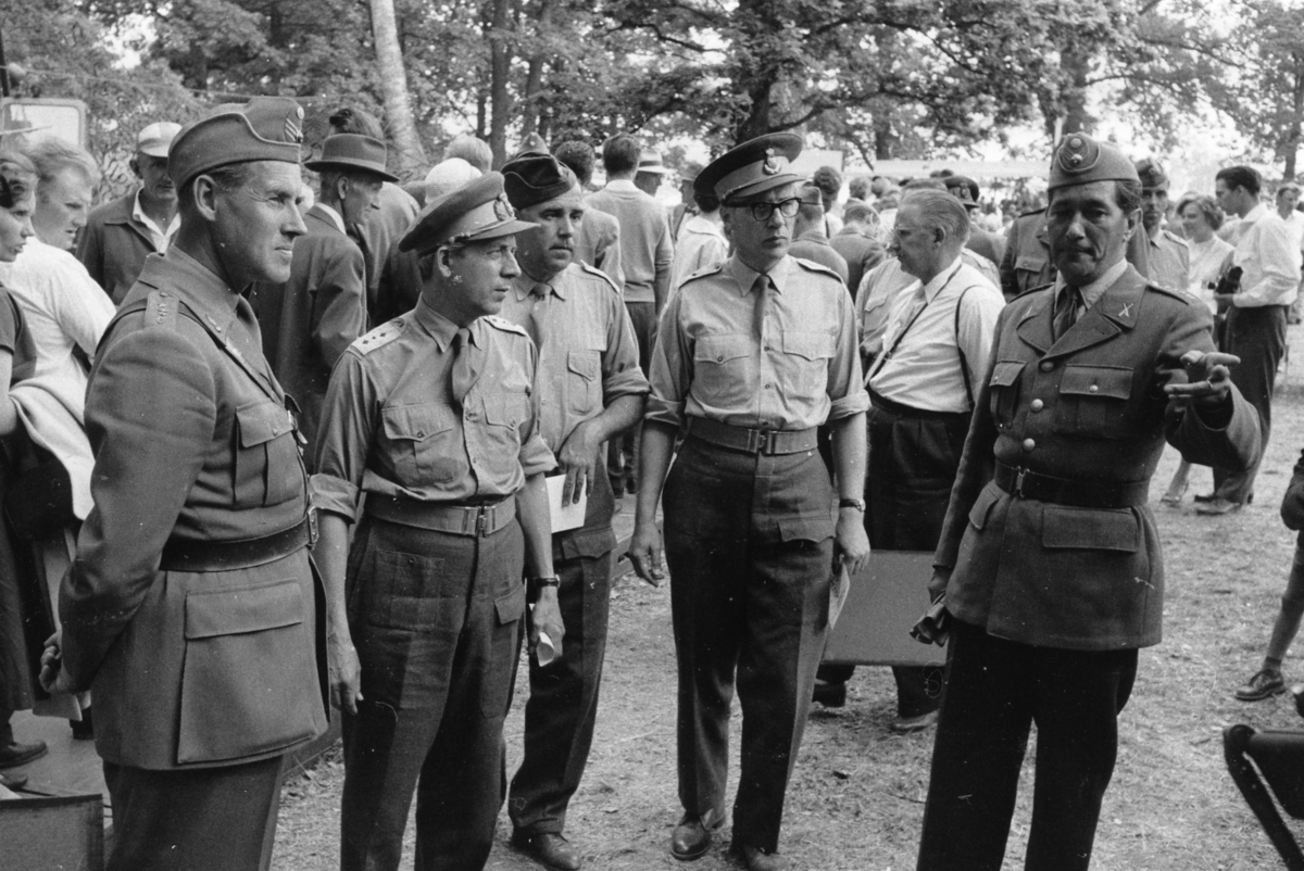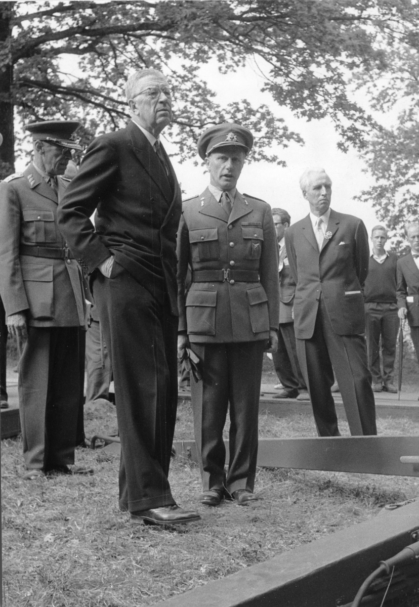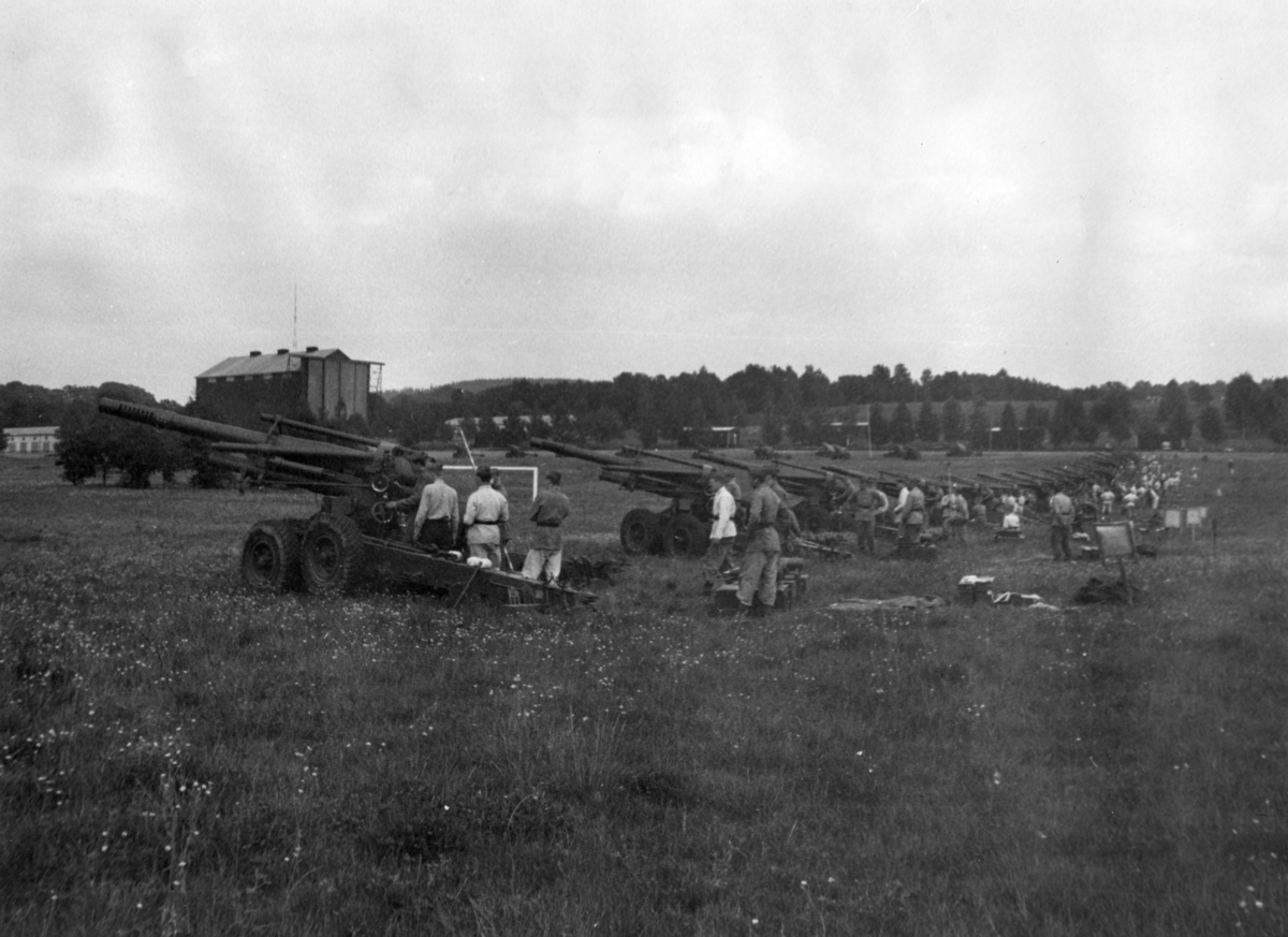 F6 Karlsborg 1959. 1.Divisionen paraderar förbi chefen F6, överste Söderlindh.