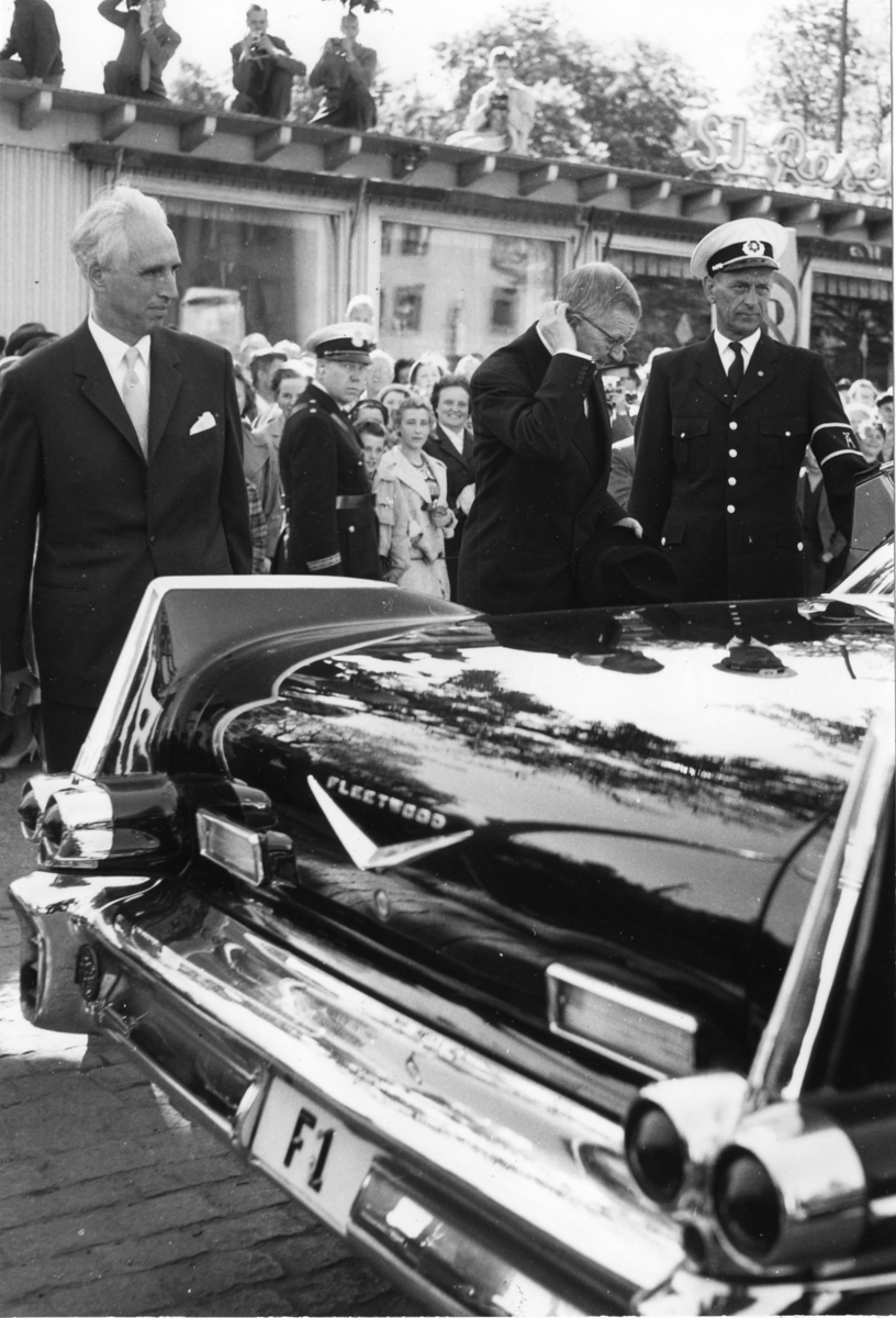 Foto från 1959 visande järnvägsfärjan Sassnitz från Öst Tyskland vid Skeppsbron, Stockholm.