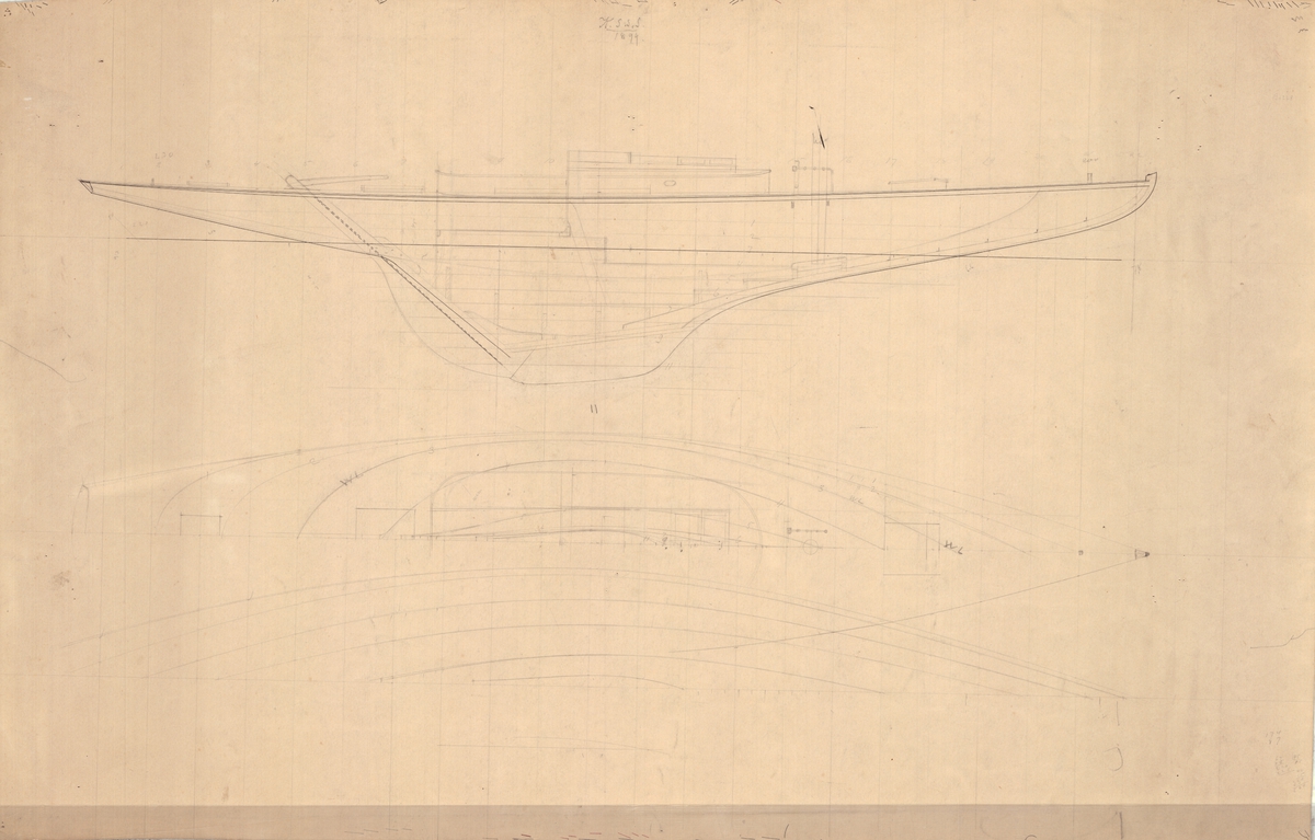 Nereus. Scale: Unknown. A half block model of the yawl, Nereus (1899) made entirely of wood in bread and butter fashion. The lower section of the hull has been painted a light green colour above which is a thin horizontal band of white paint with a black